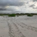 These sets of tracks are known as "crawls" made by sea turtles attempting to nest. During nesting season, Share the Beach volunteers search for crawls to track and mark the nests.