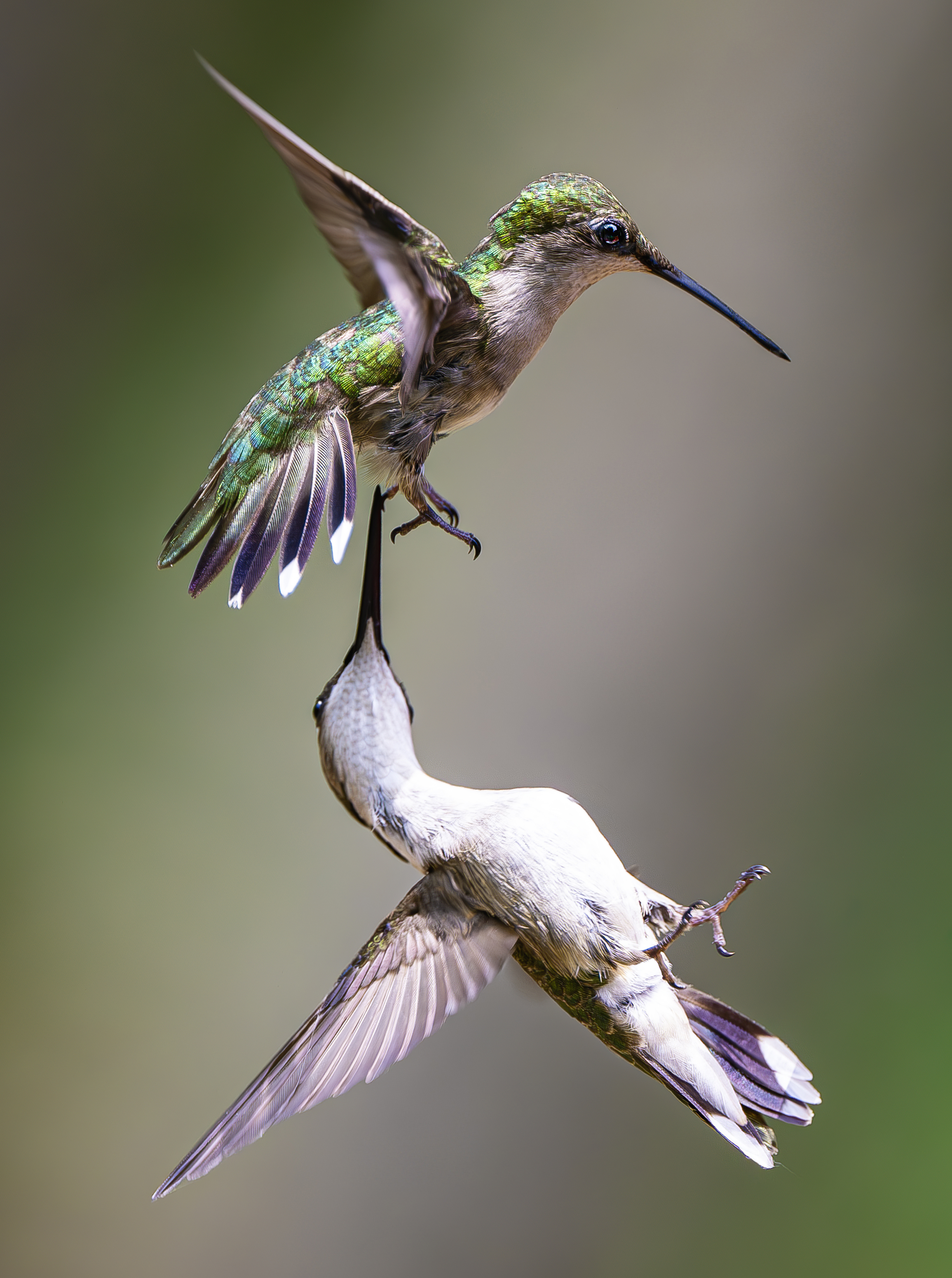 Two female ruby-throated hummingbirds fighting for territory Photographed by Ralph H. Johnson at the North Tract of Patuxent Researched Refuge.