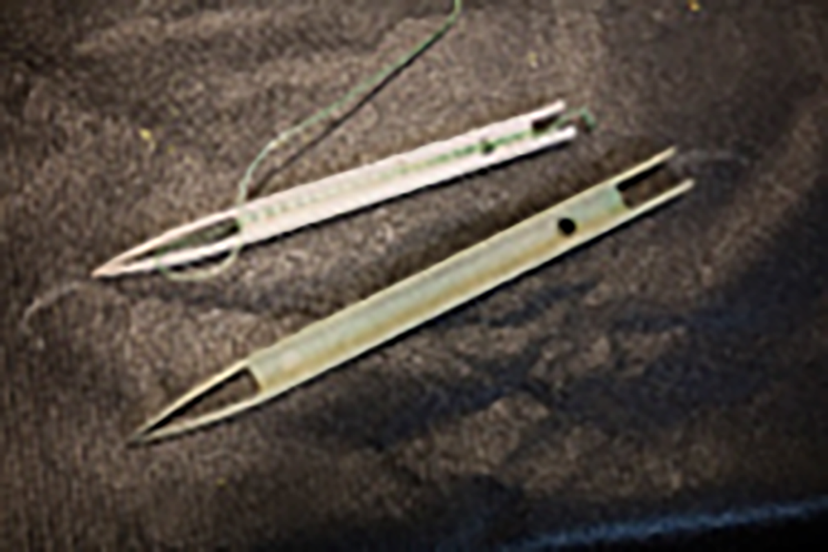 Two H-needles, the upper partially load with twine, the lower needle is empty.