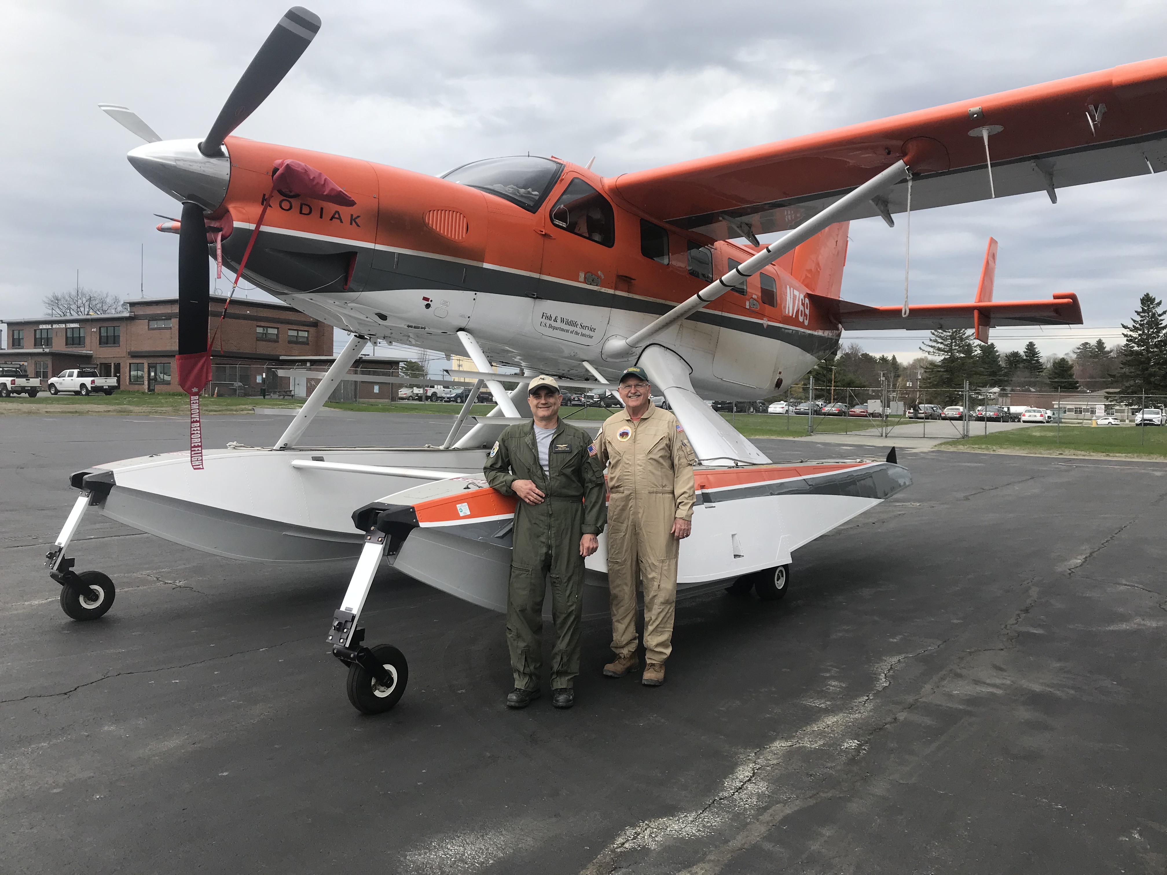 Two pilots standing next to a plane