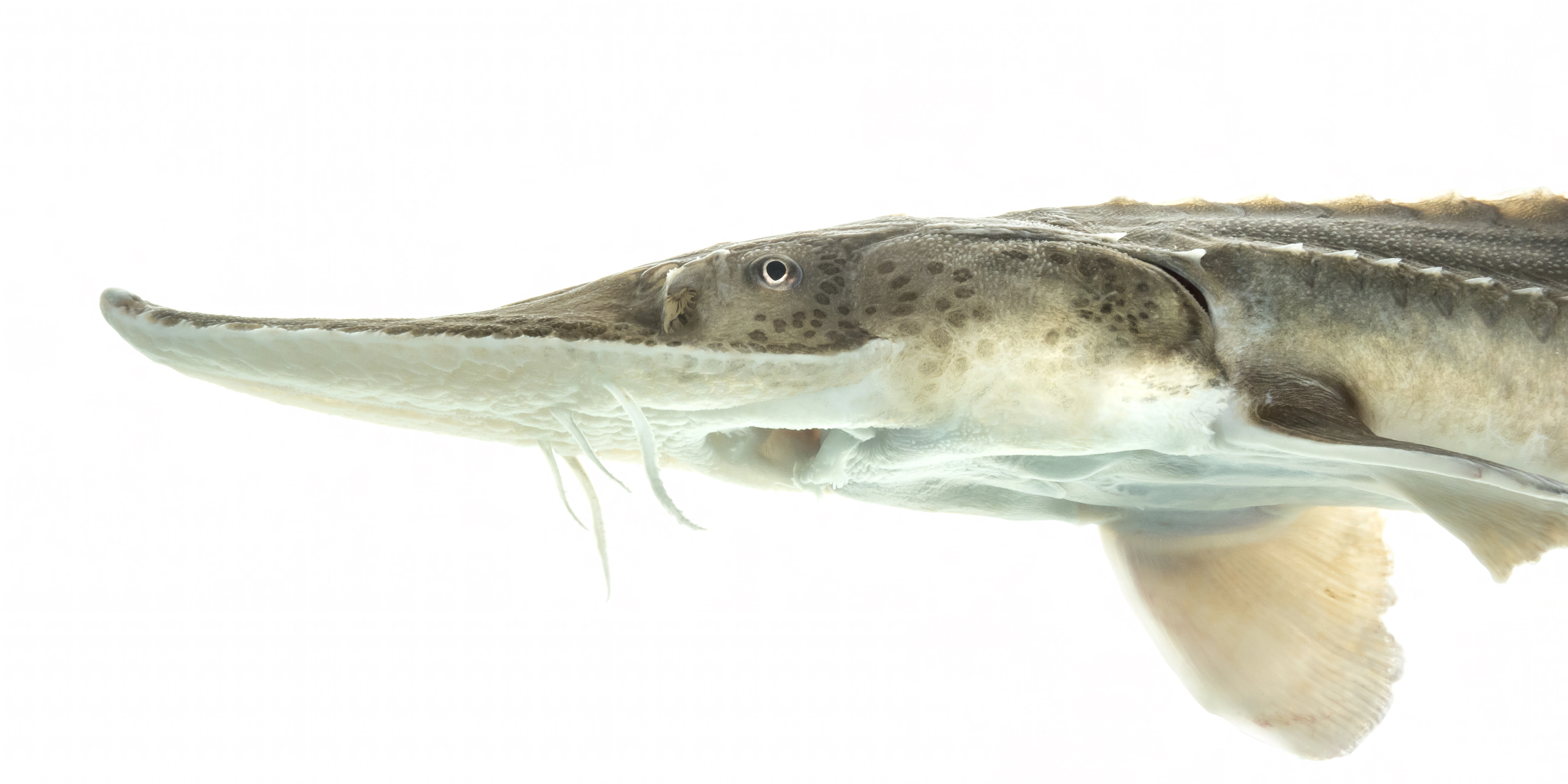 Pallid sturgeon yearling 2 year old. Currently, approximately 5,000 young pallid sturgeons are being reared at Gavins Point NFH.
