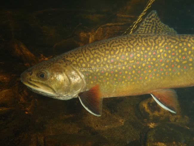 Brook trout underwater.