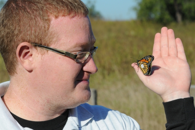 U.S. Fish and Wildlife Service biologist holds Monarch butterfly