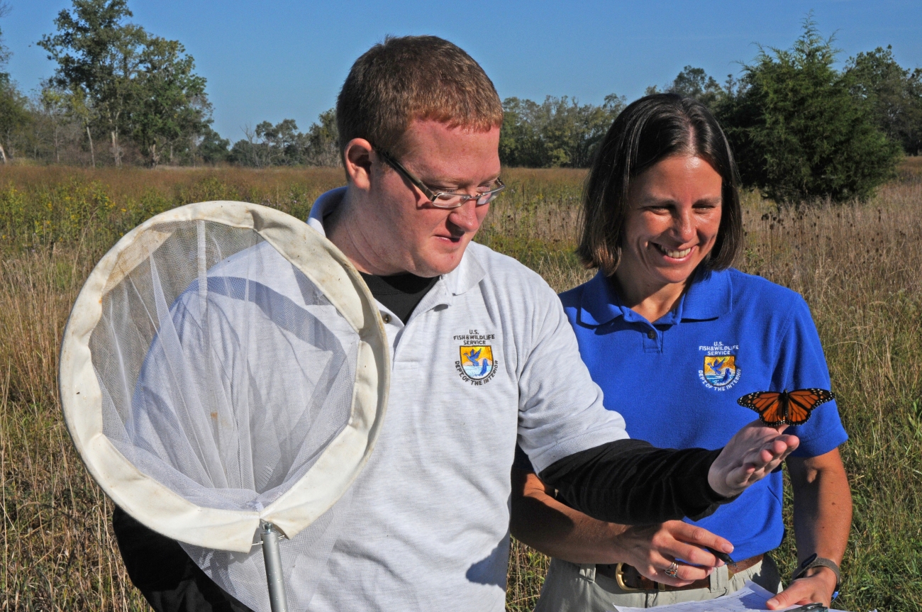 United States Fish and Wildlife Service employee holds Monarch butterfly