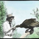 Unknown gentleman feeding California condor (Gymnogyps californianus) near Los Angeles, California. Part of the Finley and Bohlman collection scanned from glass slides made in 1906, provided courtesy of the Bird Alliance of Oregon.