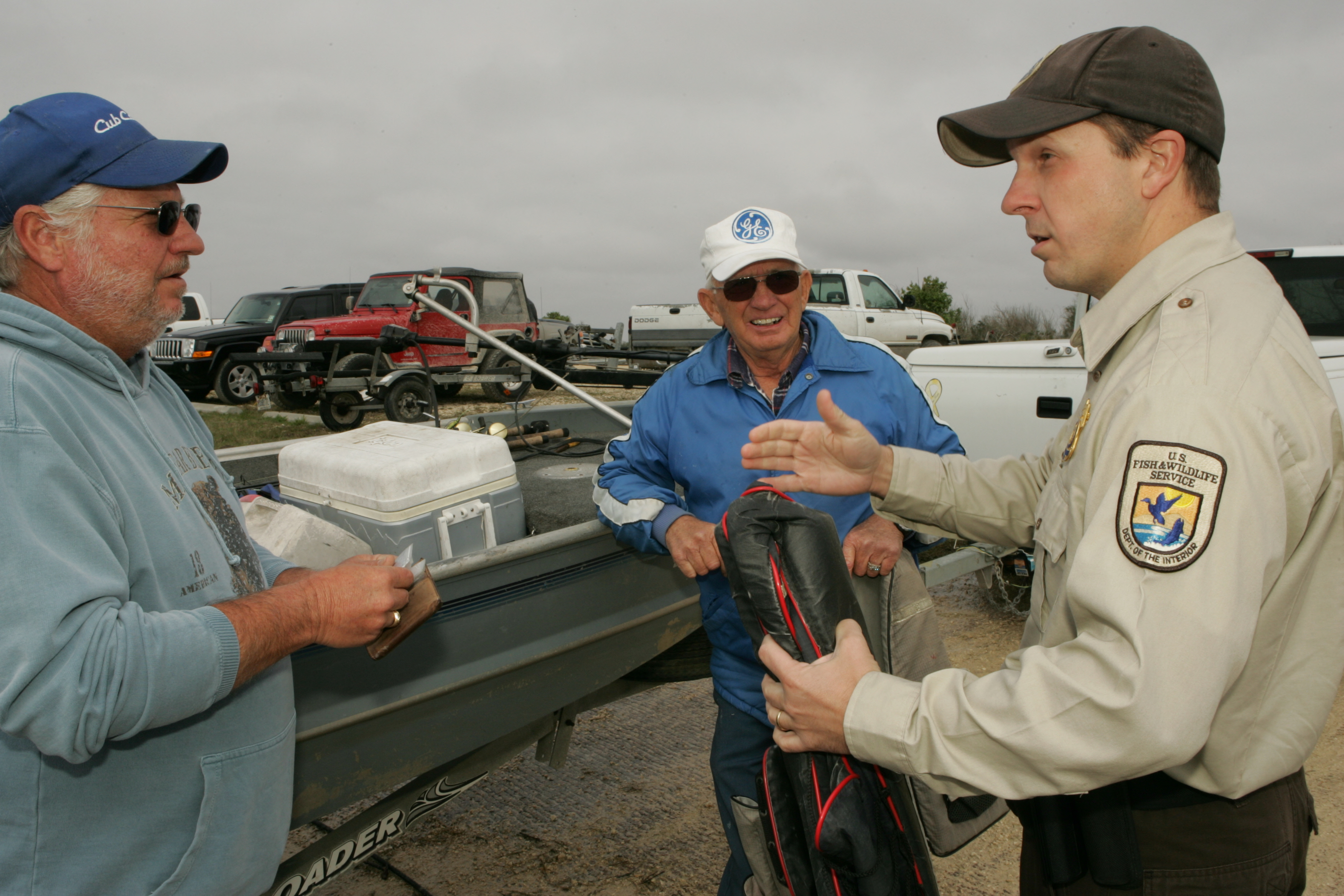 US Fish and Wildlife employee with fishermen