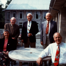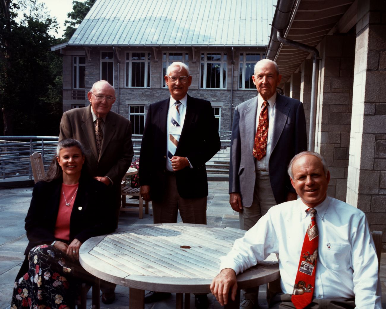Five Directors of the U.S. Fish and Wildlife Service, at Headwaters Lodge/Commons, National Conservation Training Center (NCTC), West Virginia. Seated, left to right: Jamie Rappaport Clark, Director, 1997-2001 (current director at the time the photo was taken); John F. Turner, Director, 1989-1993. Standing, left to right: Spencer H. Smith, Director, 1970-1973; Lynn A. Greenwalt, Director, 1973-1981; and John S. Gottschalk, Director, 1964-1970. June 25, 1999.