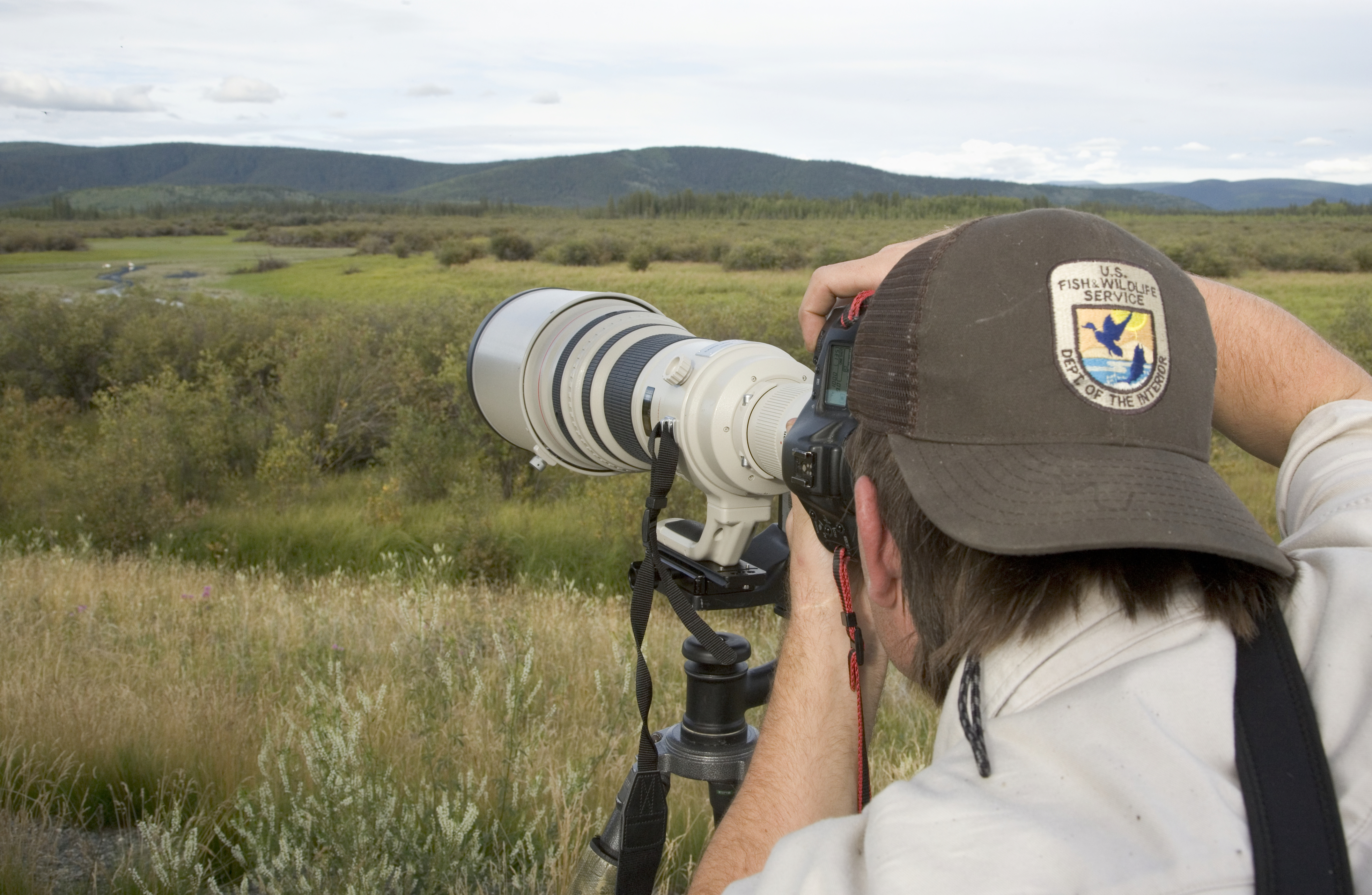 U.S. Fish and Wildlife Service employee taking photograph at Tetlin Natinal Wildlife Refuge