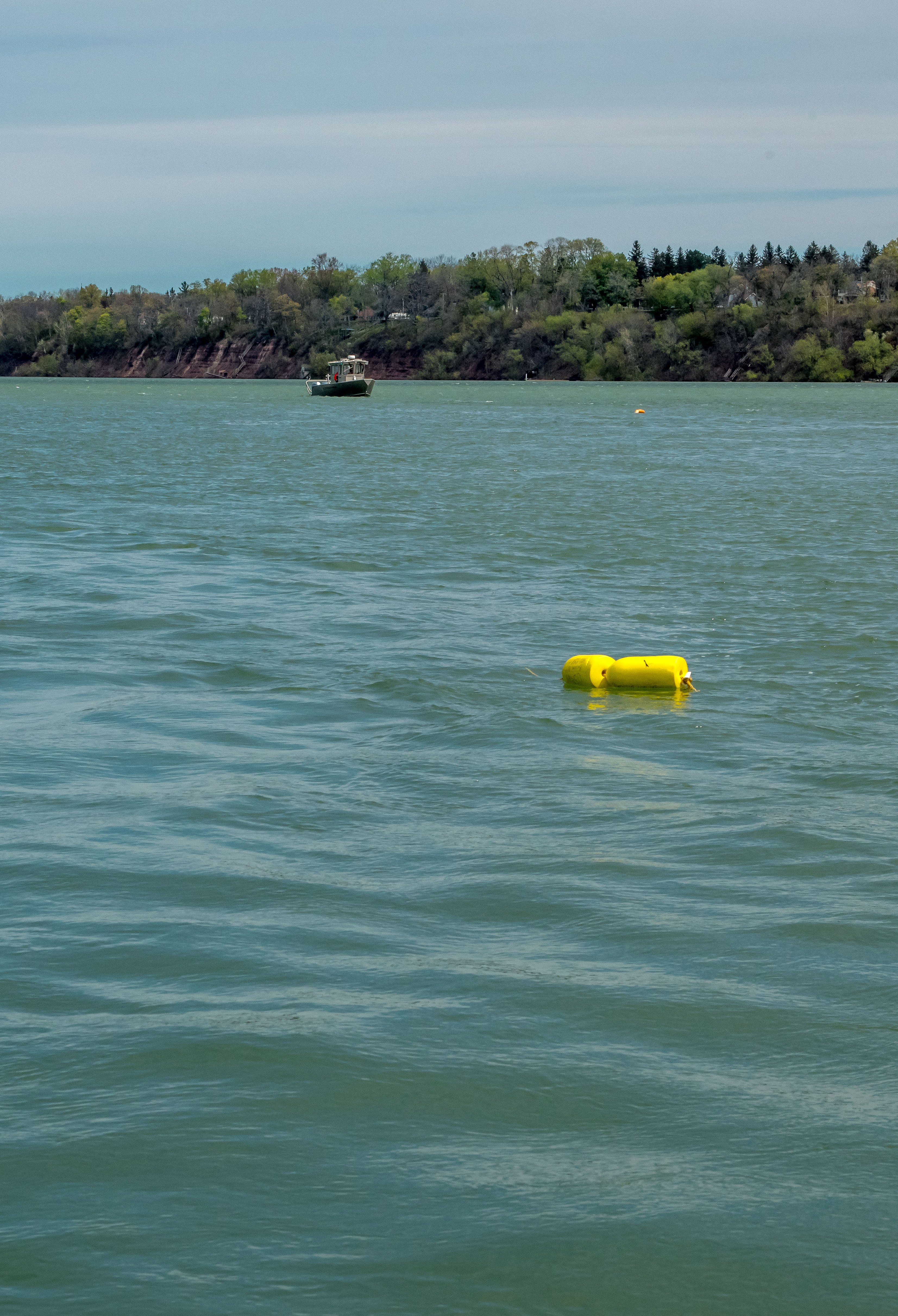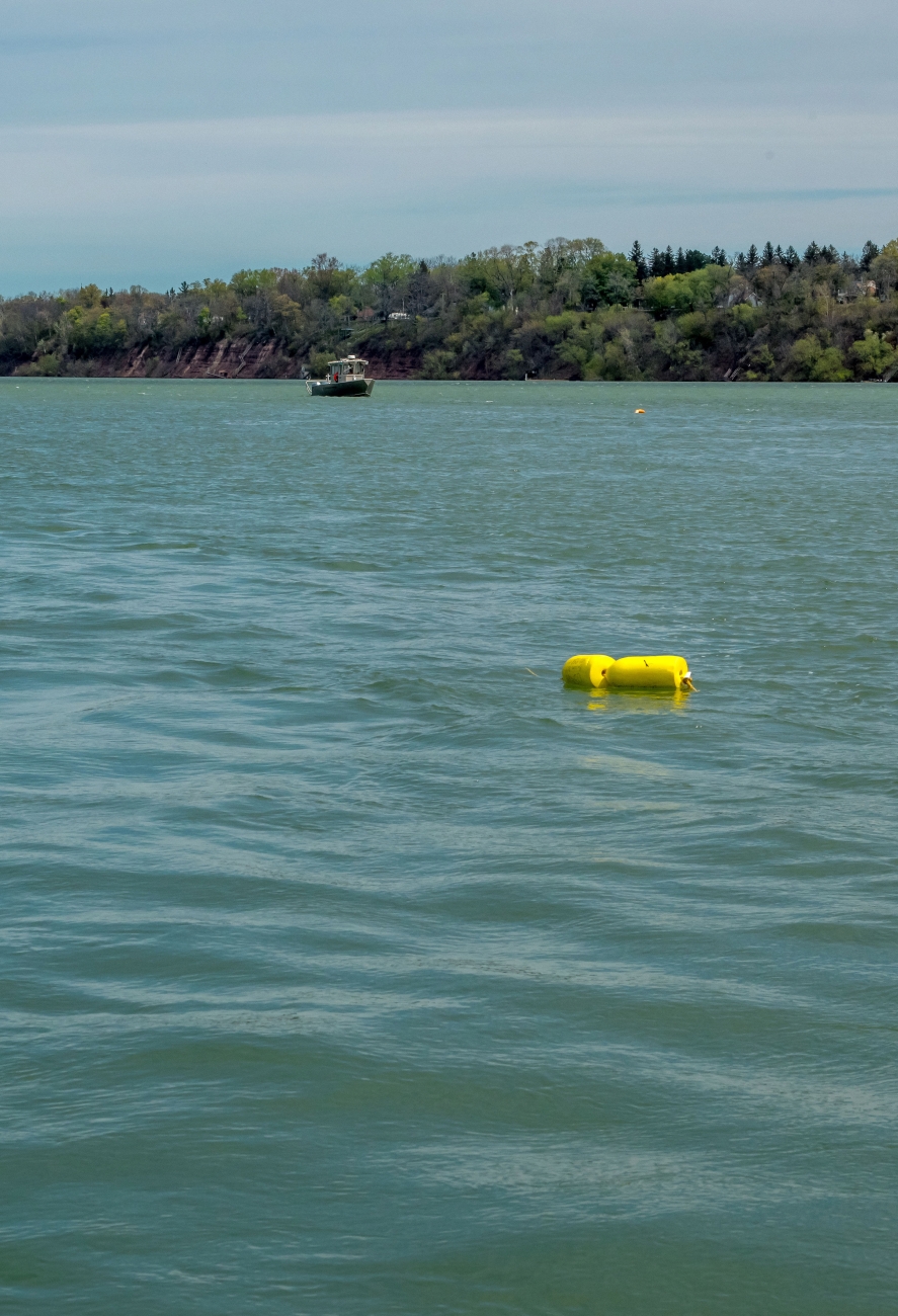 USFWS Fisheries crew in boat (The Bison) preparing for lake sturgeon field work on the Niagara River.