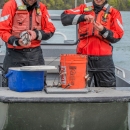 USFWS Fisheries crew in boat preparing for lake sturgeon field work on the Niagara River