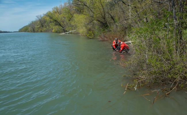 U.S. Fish and Wildlife Service fisheries crews releasing lake sturgeon