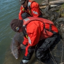 USFWS Fisheries workers releasing lake sturgeon in the Niagara River.
