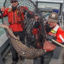 USFWS Fisheries workers caching lake sturgeon in the Niagara River, New York, for research