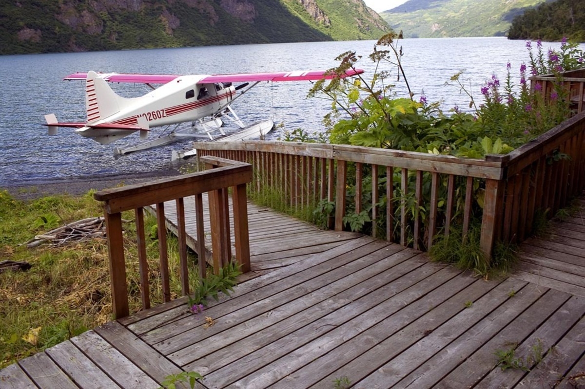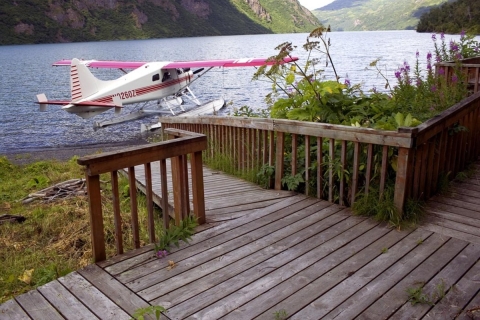 U.S. Fish and Wildlife Service Uganik Lake cabin deck and floatplane