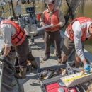 U.S. Fish and Wildlife Service workers measure invasive Silver carp.