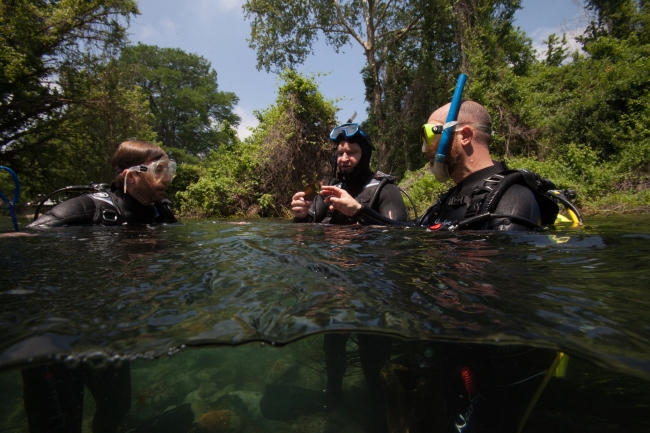 U.S. Fish and Wildlilfe Service divers after a dive in the San Marcos River
