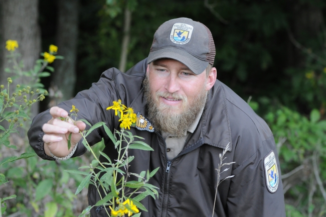 U.S. Fish and Wildlife Service biologist tags a Monarch butterfly