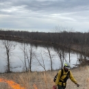 U.S. Fish and Wildlife Service employee and wildland firefighter Audrey Basson uses a drip torch, a handheld device for igniting fires, at Patoka River National Wildlife Refuge in Indiana.