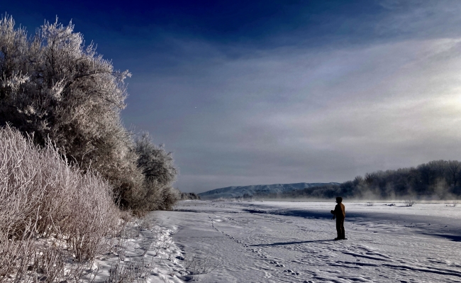 USFWS employee identifying birds during Christmas Bird Count at Ouray NWR