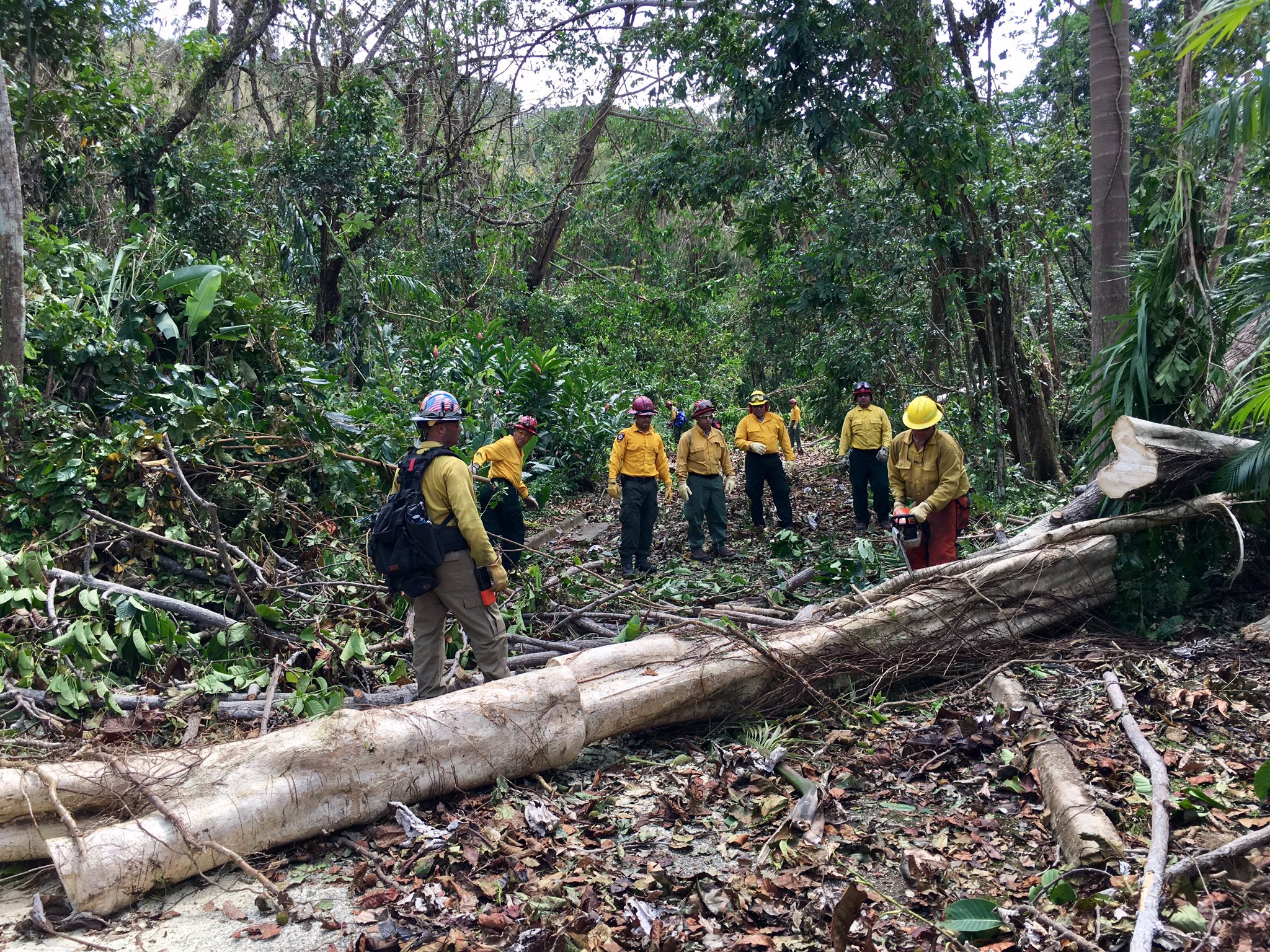 USFWS firefighters help clear downed trees at El Yunque National Forest in Puerto Rico after Hurricane Irma.