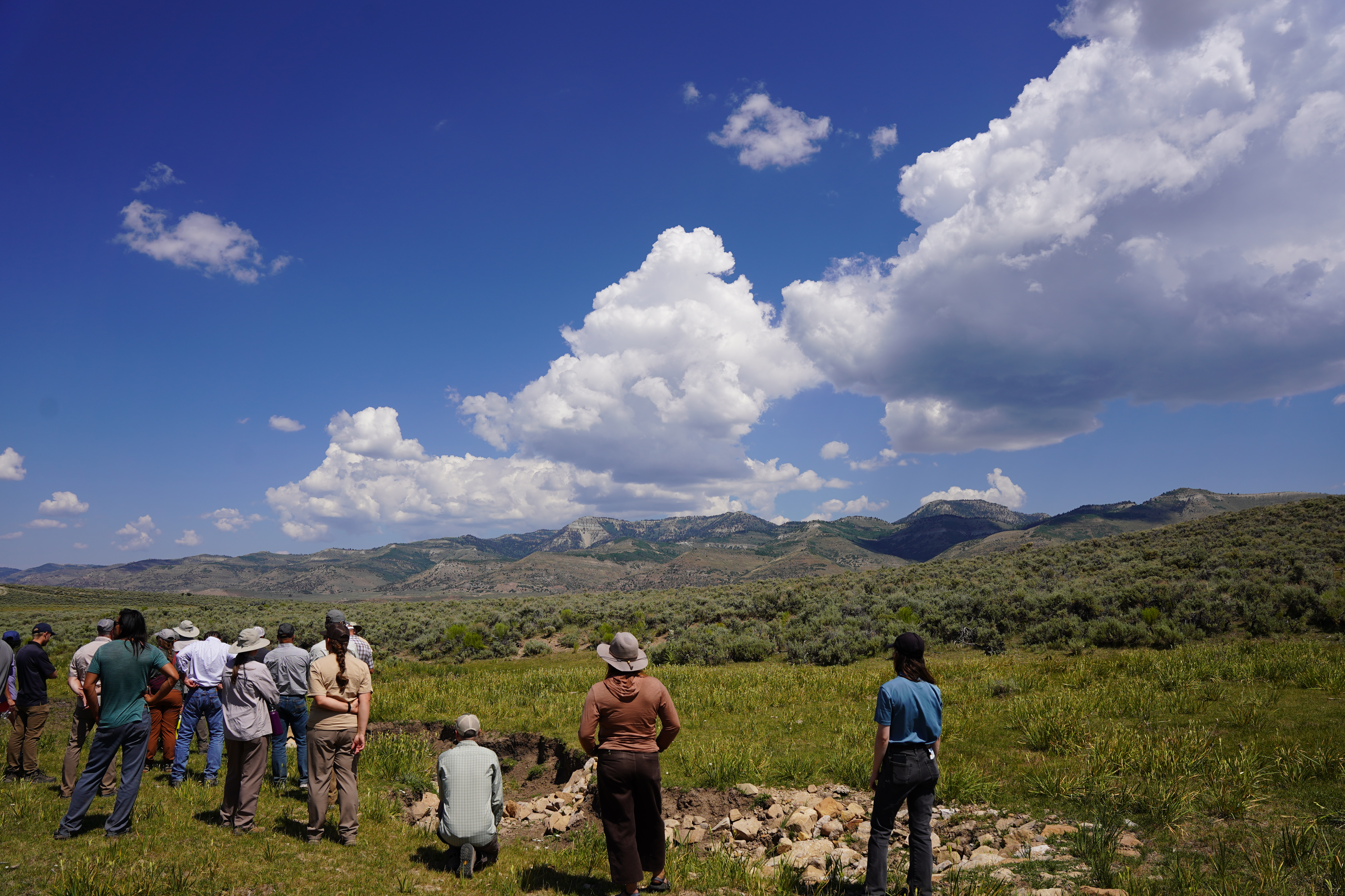 On one of the many site visits held this day, Utah Watershed Restoration Initiative partners overlook erosion control structures and the sagebrush ecosystem it protects. The Wet meadow here is slowly being restored and grazing can now take place.