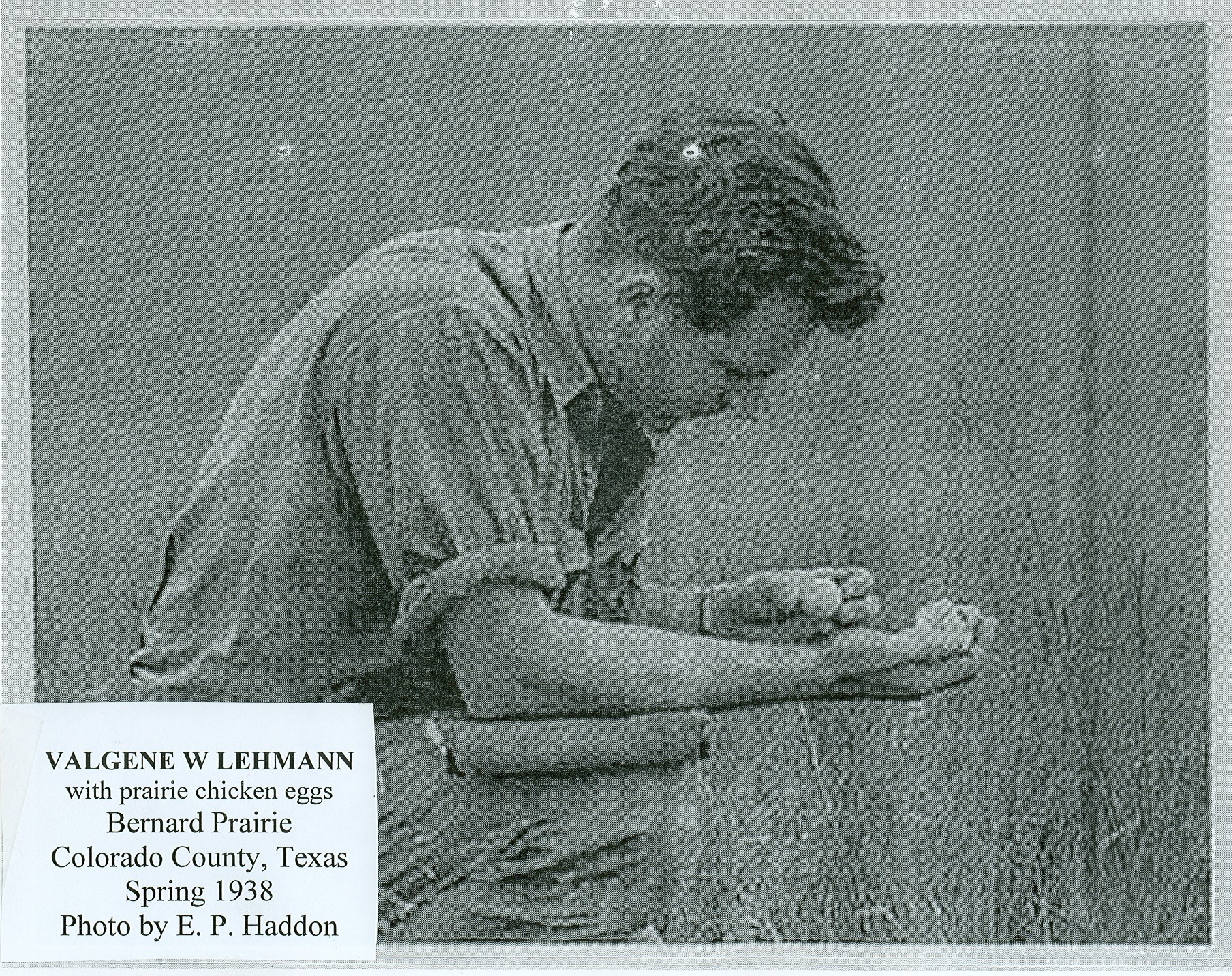 Biologist Valgene W. Lehmann examining Attwater's prairie-chicken eggs in 1938.