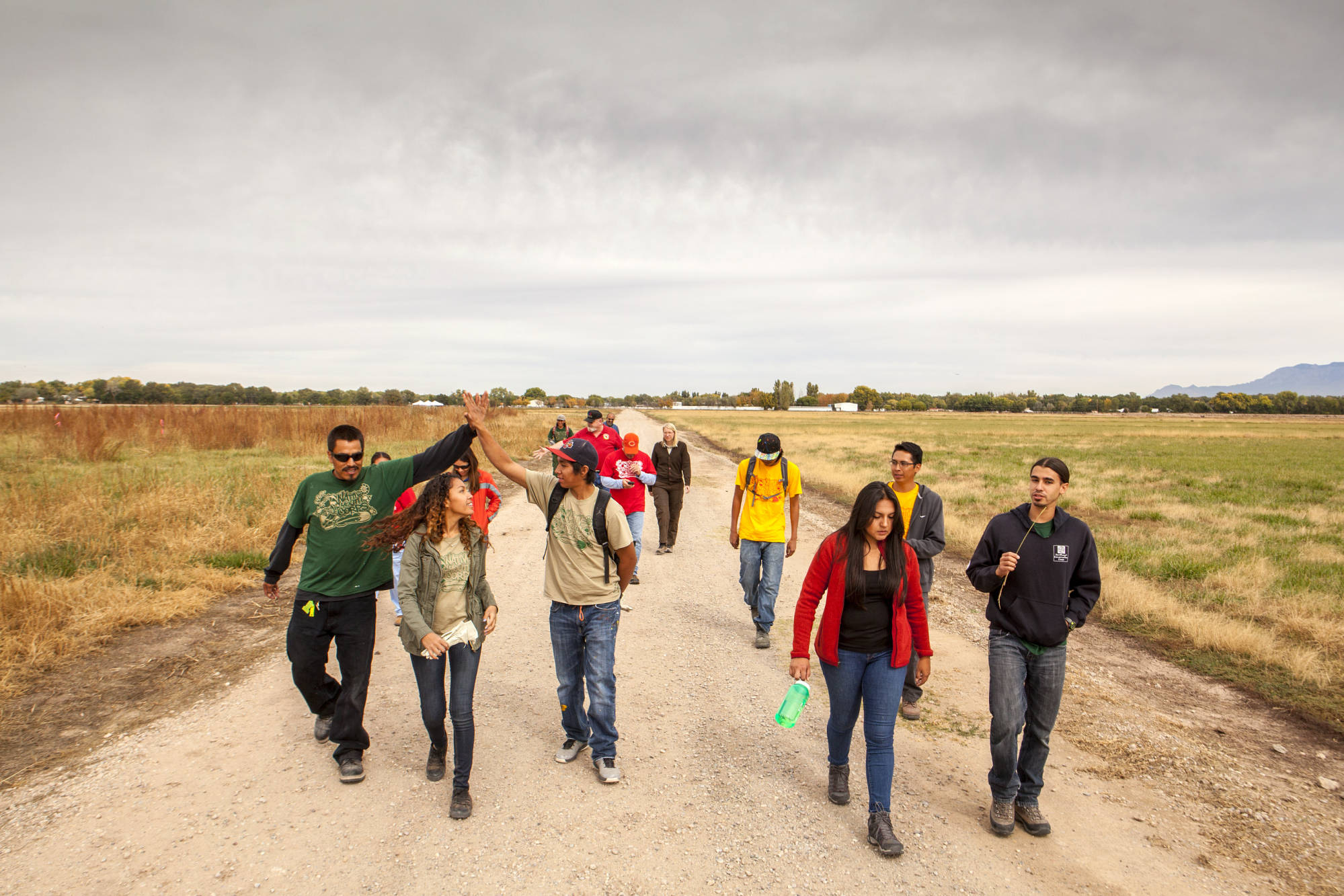 A group of youth and staff members enjoy the outdoors at Valle de Oro National Wildlife Refuge in New Mexico, an urban wildlife refuge.