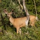 A young mule deer buck in velvet stands on the edge of a woodland at Red Rock Lakes National Wildlife Refuge. Photo by James "Newt" Perdue/USFWS Volunteer.
