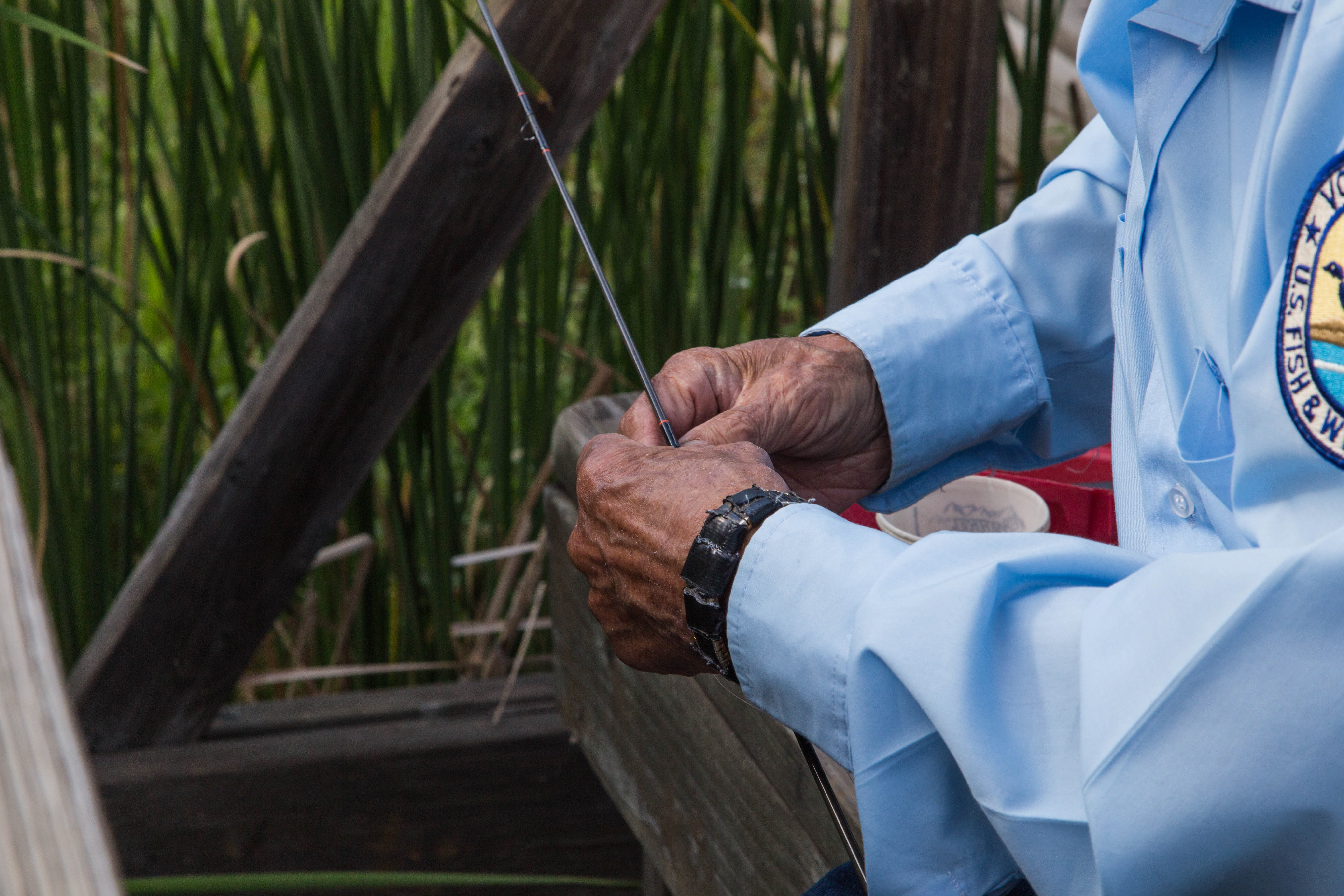 Veterans enjoy day by the lake fishing. Adaptive fishing program for Veterans at Rocky Mountain Arsenal NWR.