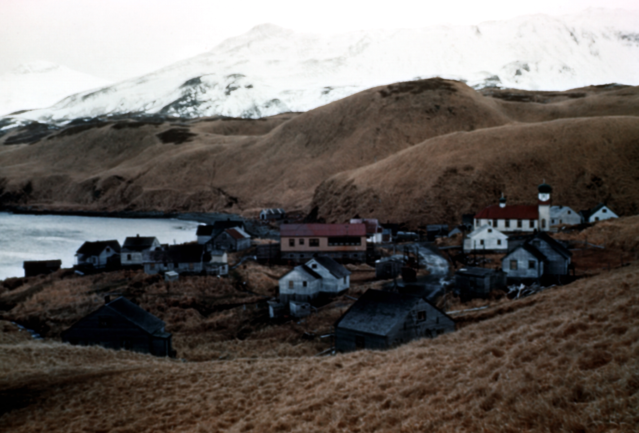 View of Atka Village. Villagers have Atka and Amlia Islands in the Aleutians under permit. This image was taken by 'Sea Otter' Jones.