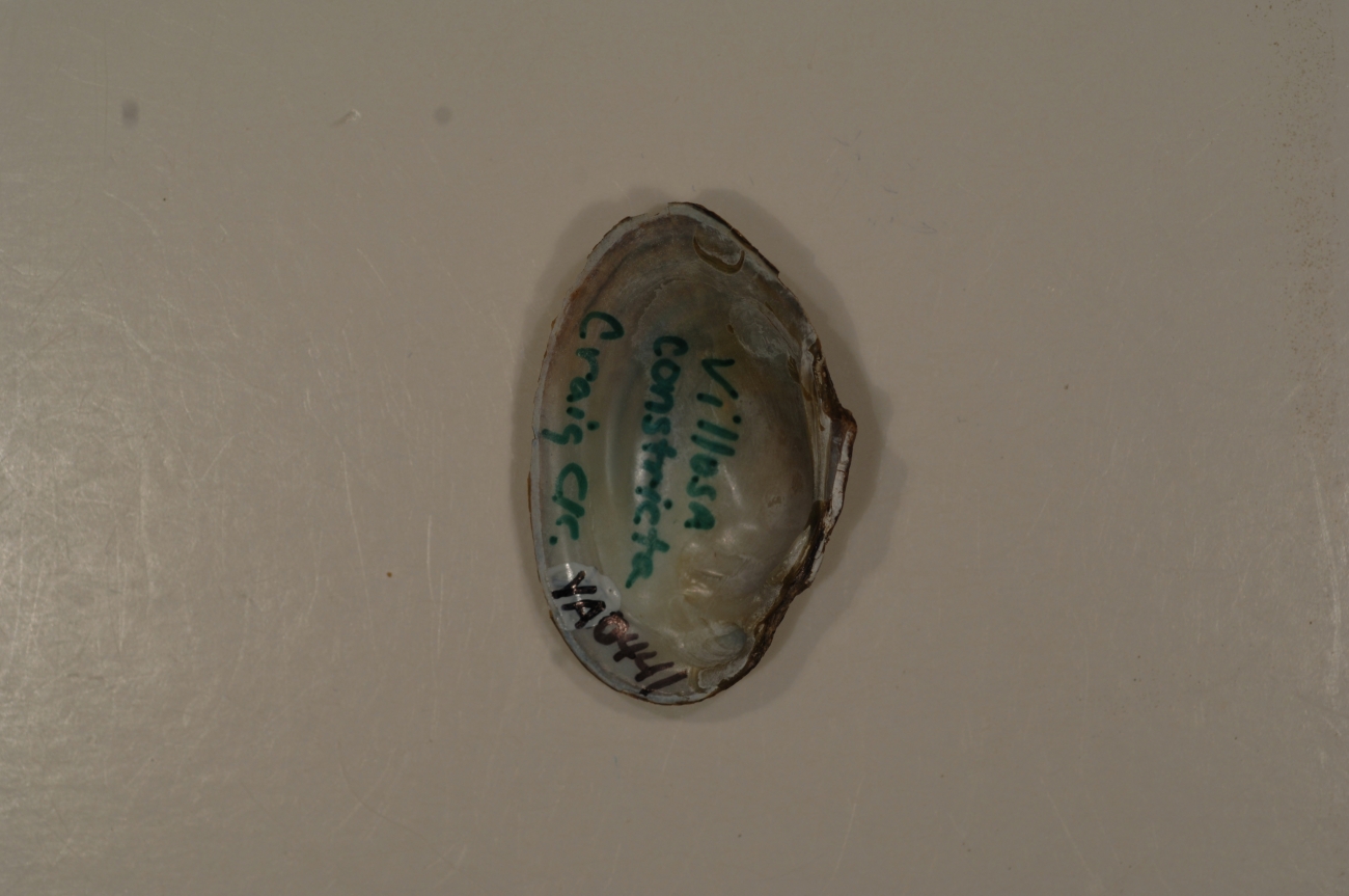 NCTC Freshwater Mussels Teaching Collection: Order: Unionoida Family: Unionidae Genus (ITIS): Villosa Species: constricta (inside) Williams et al.: Use to be: Location Name: Craig CK Location State: VA