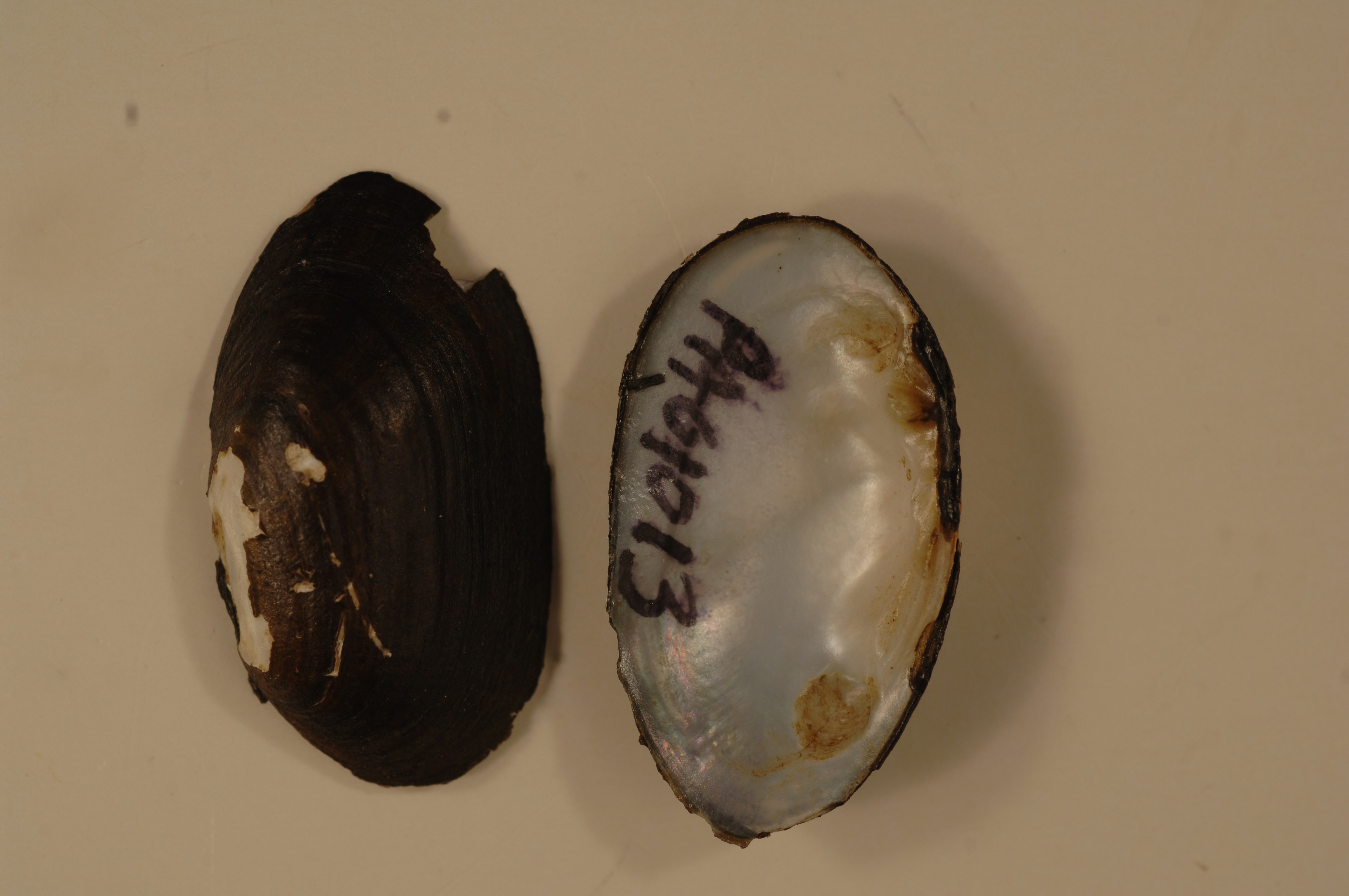 NCTC Freshwater Mussels Teaching Collection: Order: Unionoida Family: Unionidae Genus (ITIS): Villosa Species: fabalis Williams et al.: Use to be: Location Name: French Creek, Meadville Location State: PA