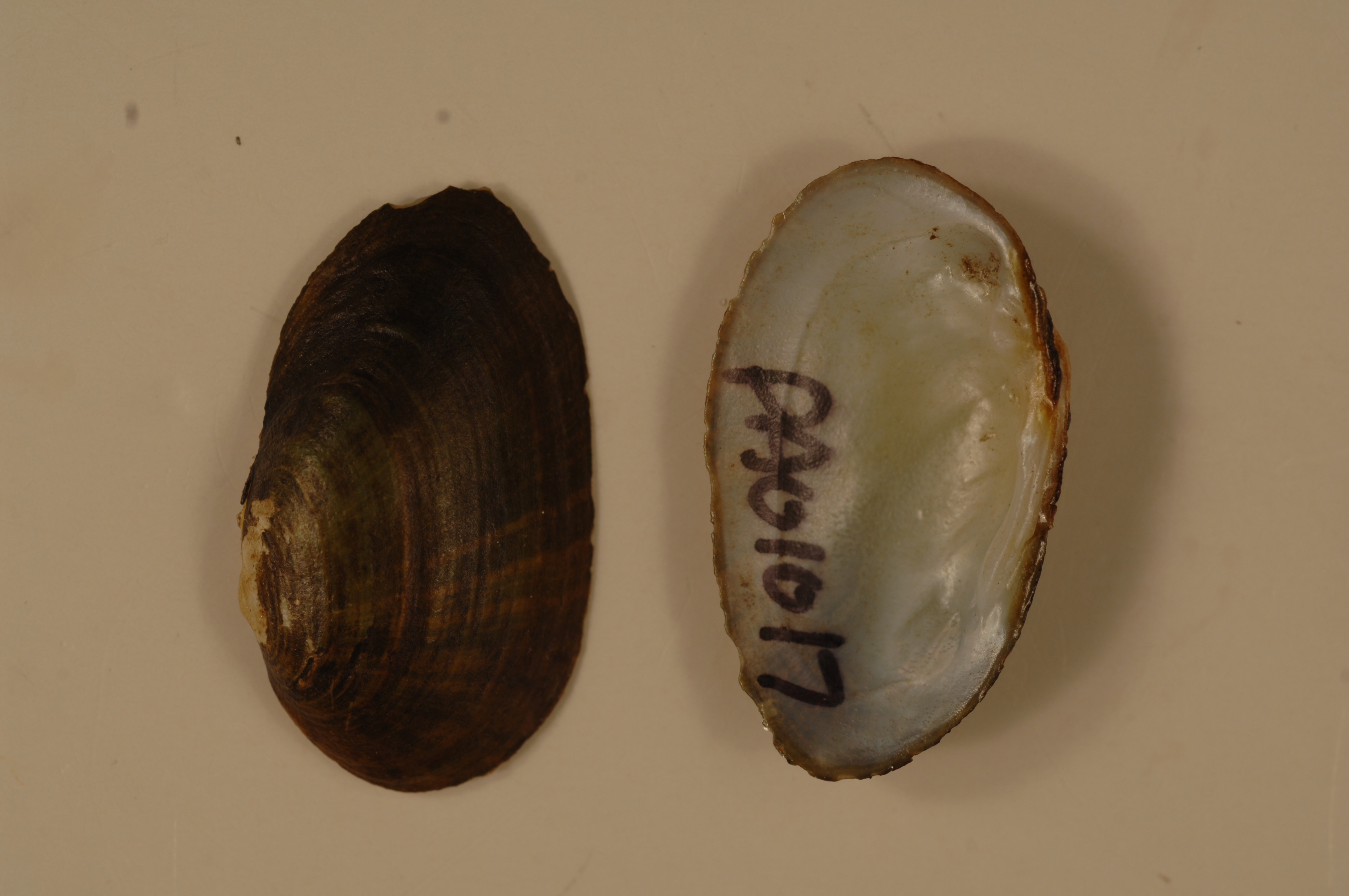 NCTC Freshwater Mussels Teaching Collection: Order: Unionoida Family: Unionidae Genus (ITIS): Villosa Species: fabalis Williams et al.: Use to be: Location Name: French Creek, Meadville Location State: PA