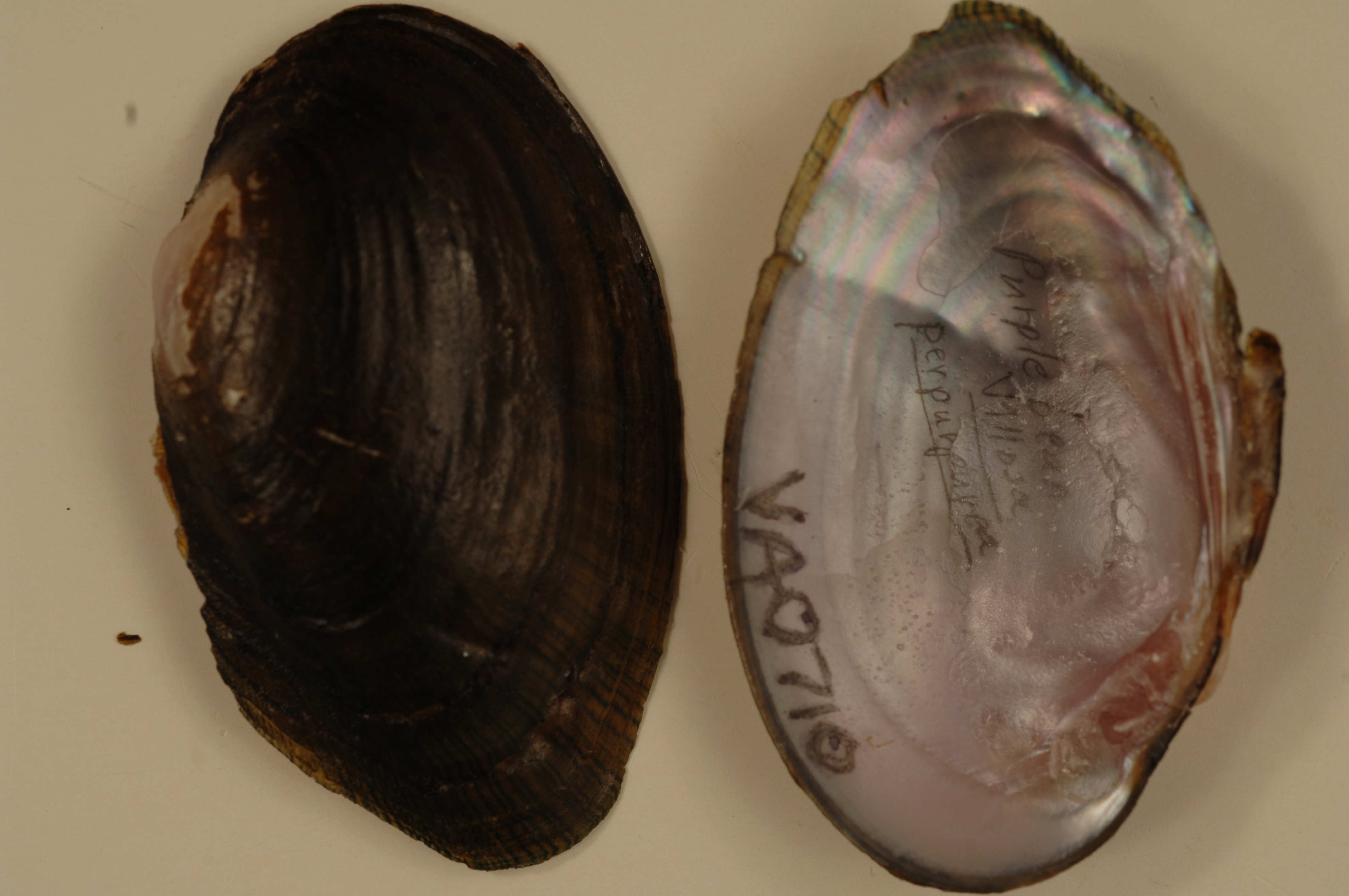 NCTC Freshwater Mussels Teaching Collection: Order: Unionoida Family: Unionidae Genus (ITIS): Villosa Species: perpurpurea Williams et al.: Use to be: Location Name: Indian Cr., Lcinch River, Cedar Bluff Location State: VA