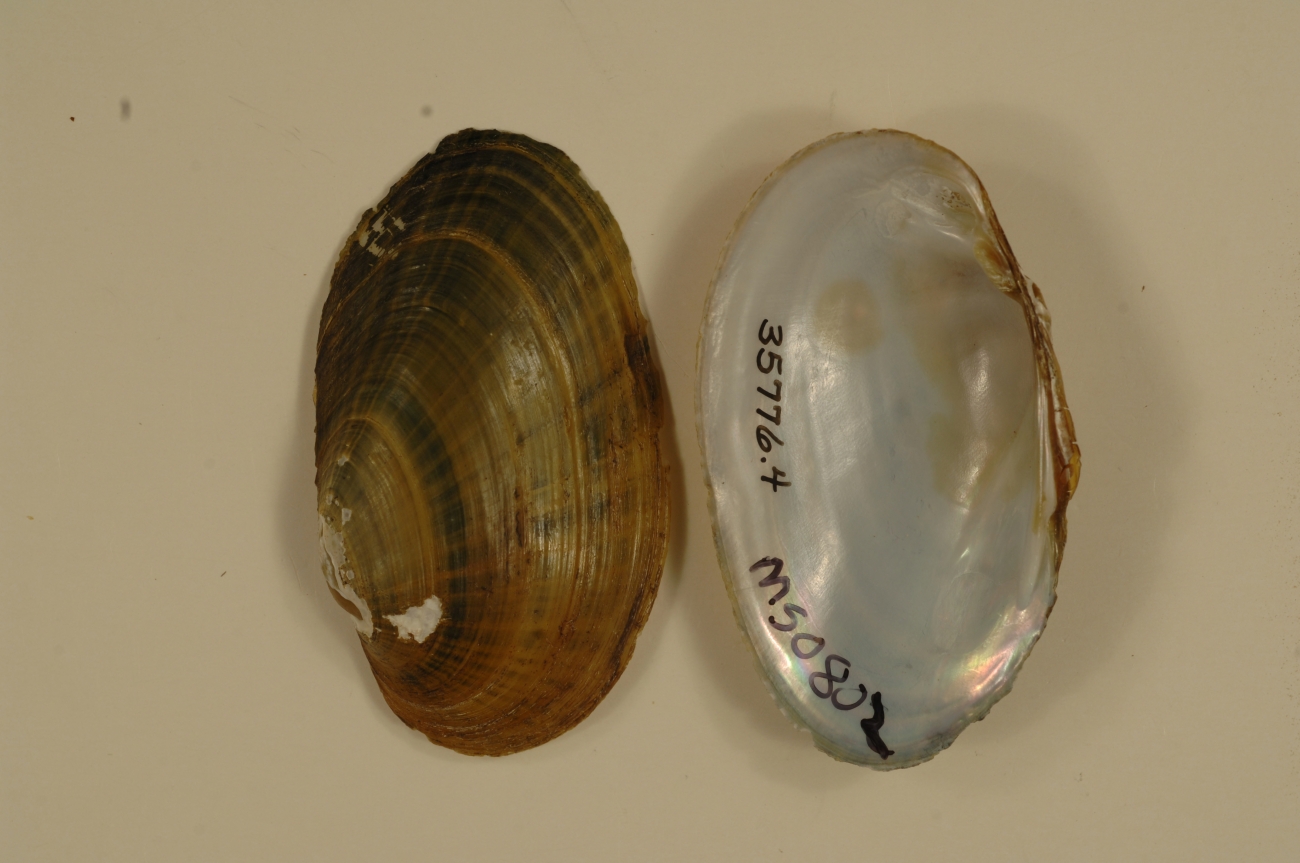 NCTC Freshwater Mussels Teaching Collection: Order: Unionoida Family: Unionidae Genus (ITIS): Villosa Species: vibex Williams et al.: Use to be: Location Name: Mockeys Crk, 6.4 miles WNW of Belmont Location State: MS