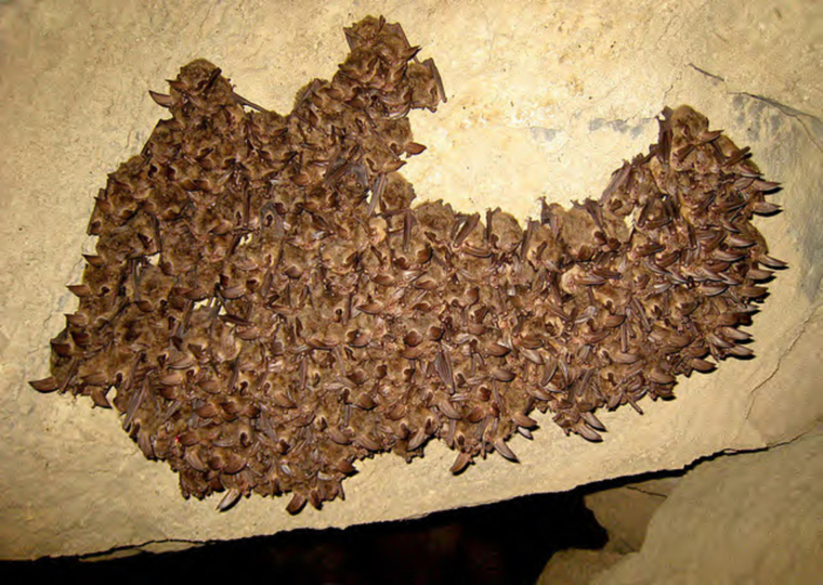 Cluster of hibernating Virginia big-eared bats in Hellhole, Pendleton County, WV.