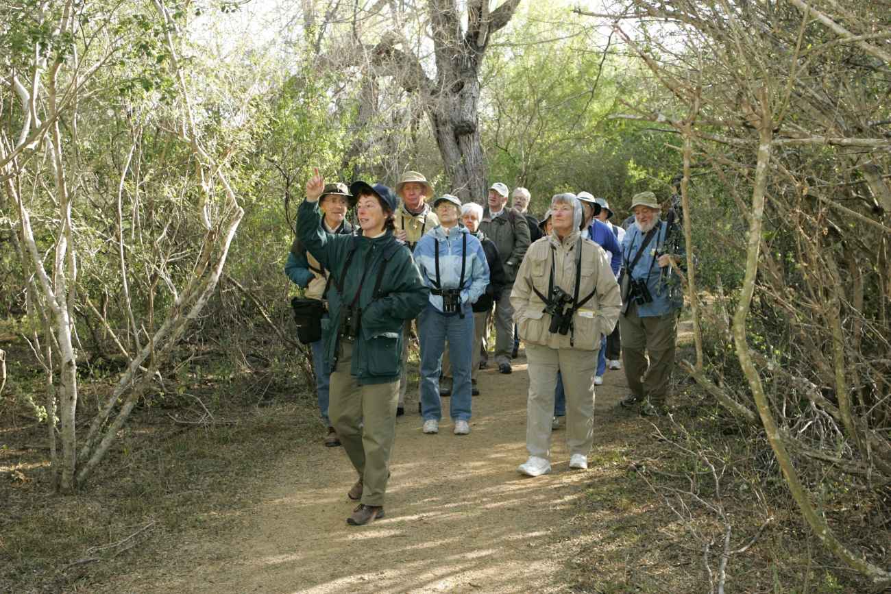 Visitors are on a guided tour of one of the many wildlife trails available.