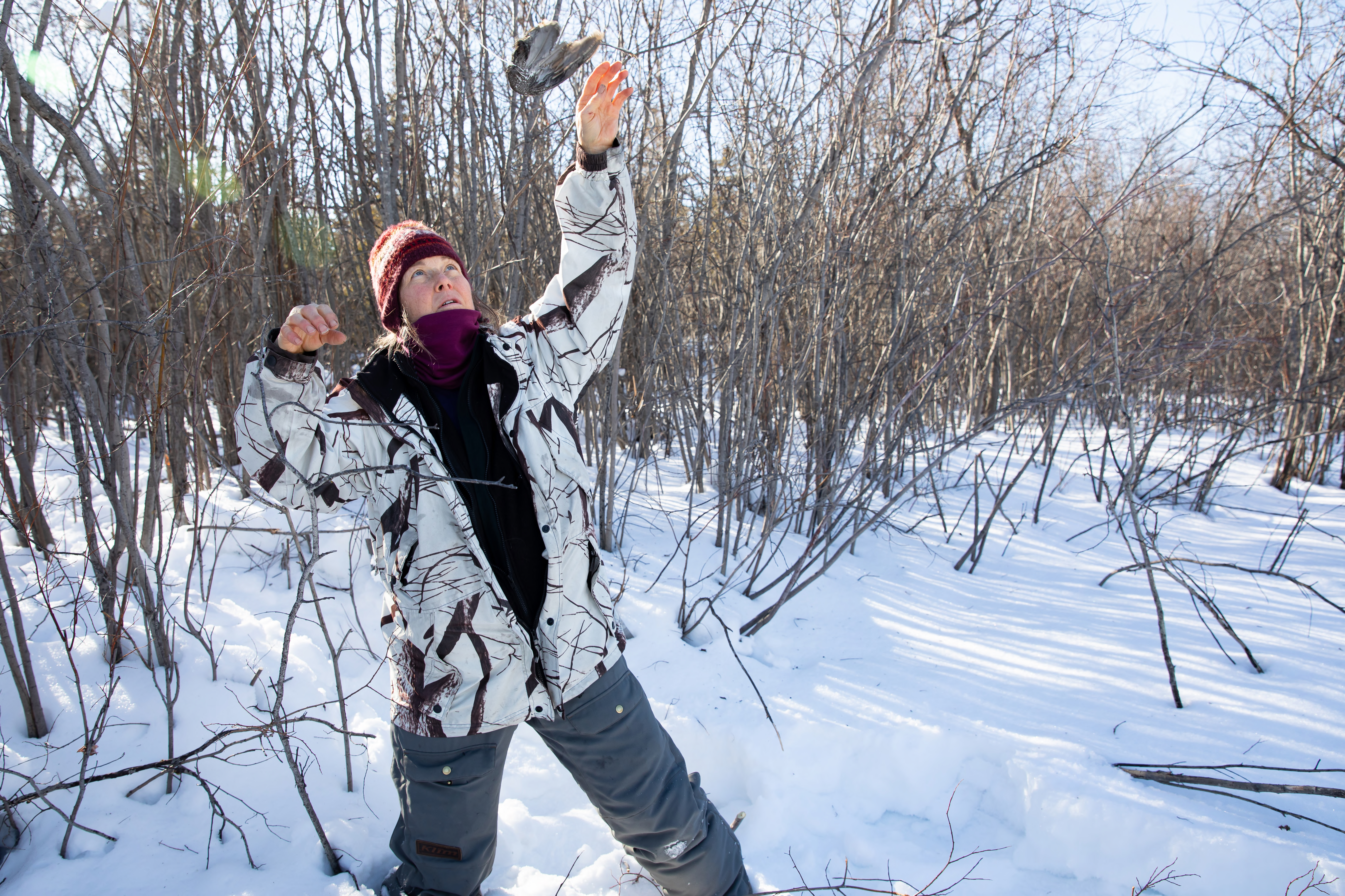 Visual lures also help trap wild lynx. Much like domestic cats are entertained by feather lures, biologists hang grouse wings to wave in the wind near a trap. Lynx Project At Yukon Flats National Wildlife Refuge.