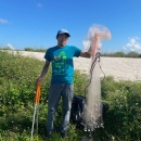 A National Public Lands Day cleanup volunteer stands with a cast net.