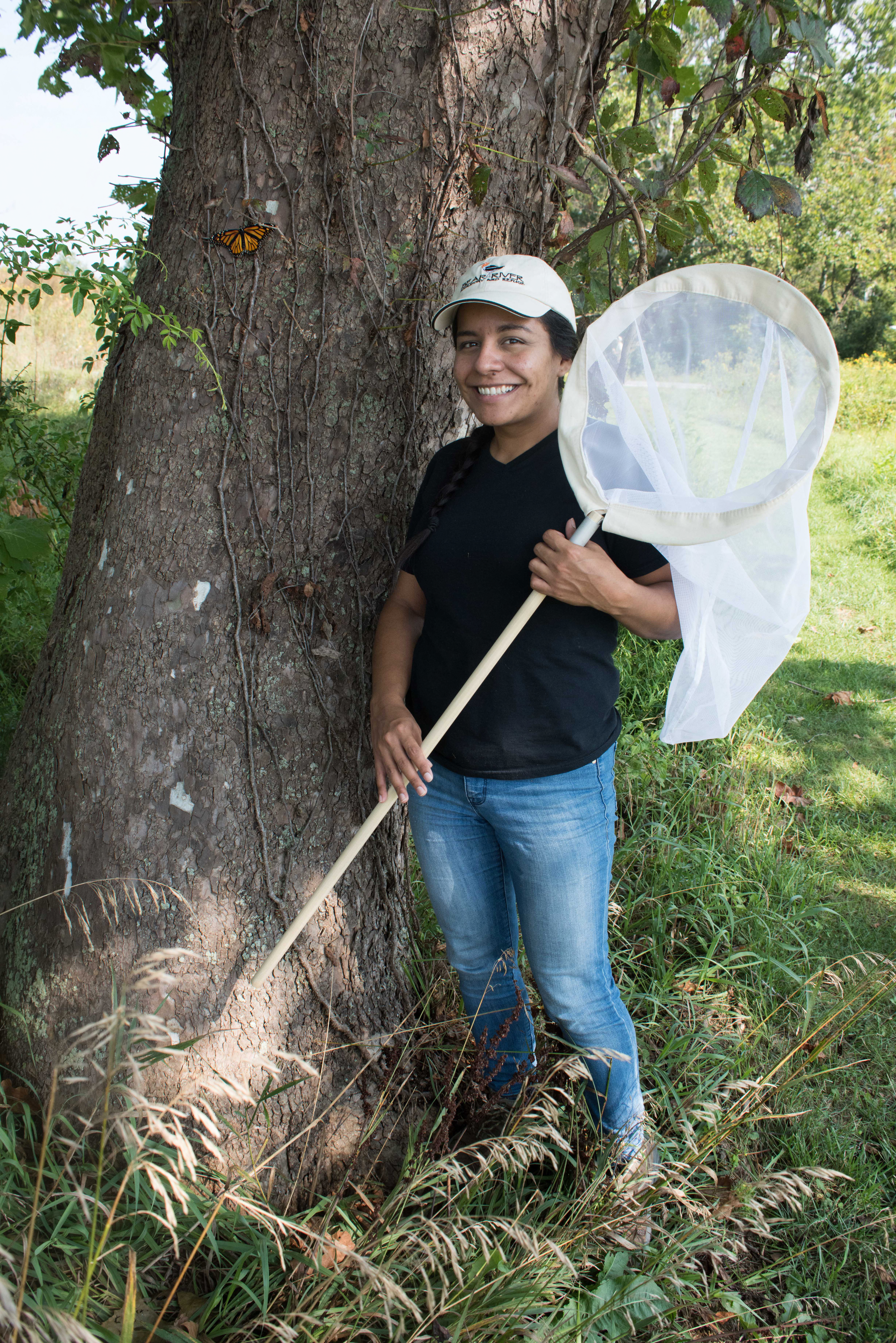Volunteer with monarch butterfly
