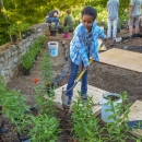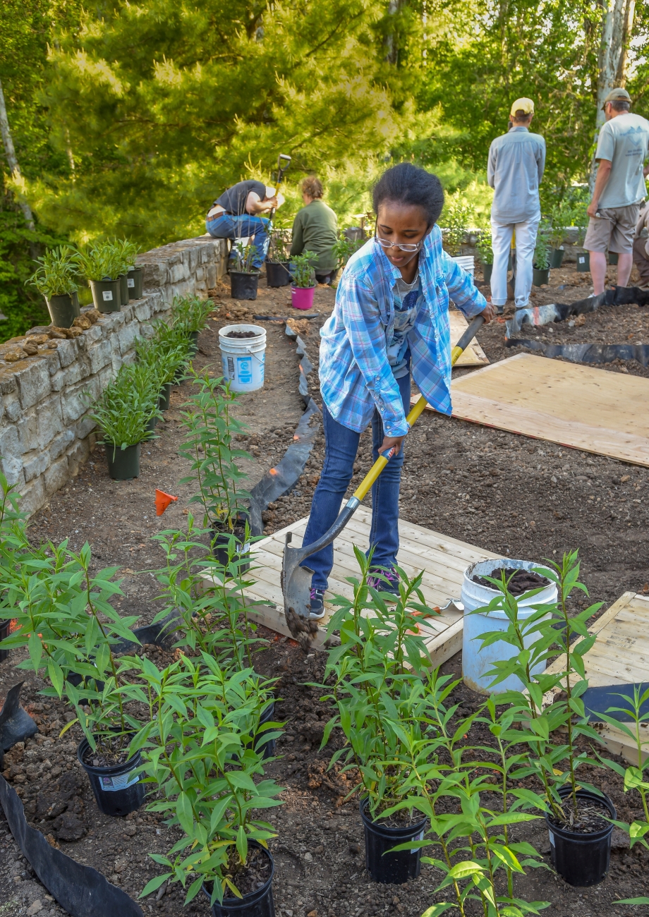 Volunteer planting a monarch garden