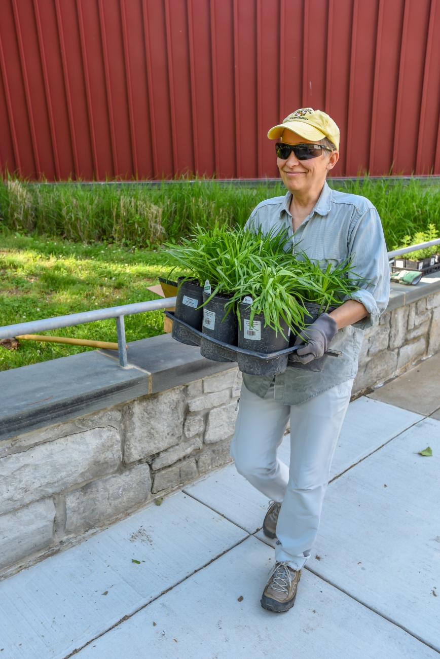 Volunteers plant native flowering plants in a Monarch Waystation Garden to create, conserve, & protect Monarch habitats.