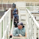 Volunteer Larry Fudge waits to guide bison into chutes from the roundup pen for their annual health screening at Neal Smith National Wildlife Refuge in Iowa.