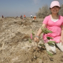 A Girl Scout volunteer shows her pride in planting this tree, after hurricane Ike.