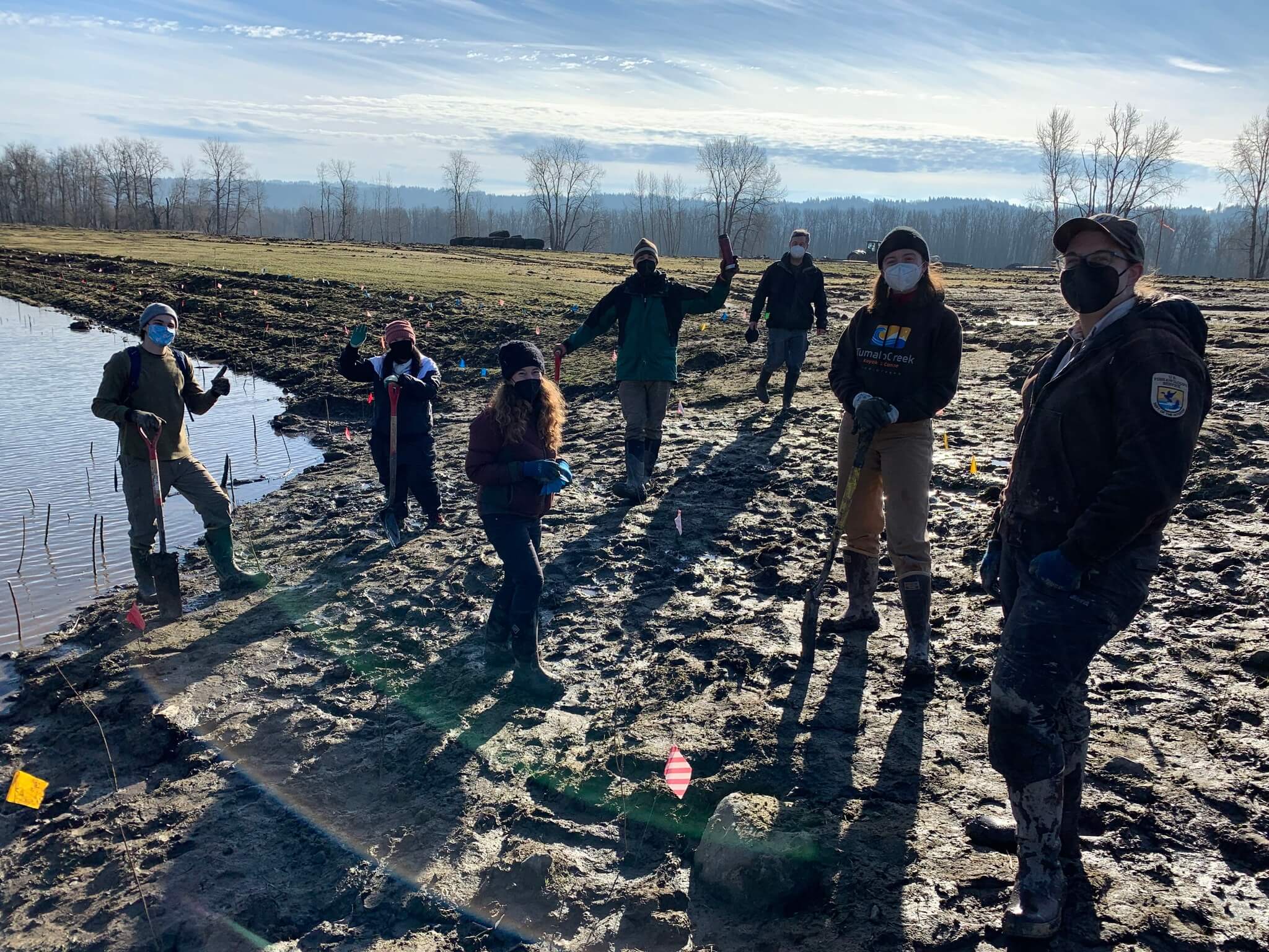 Volunteers plant willow cuttings in a wetland at Steigerwald Lake National Wildlife Refuge in Washington state.