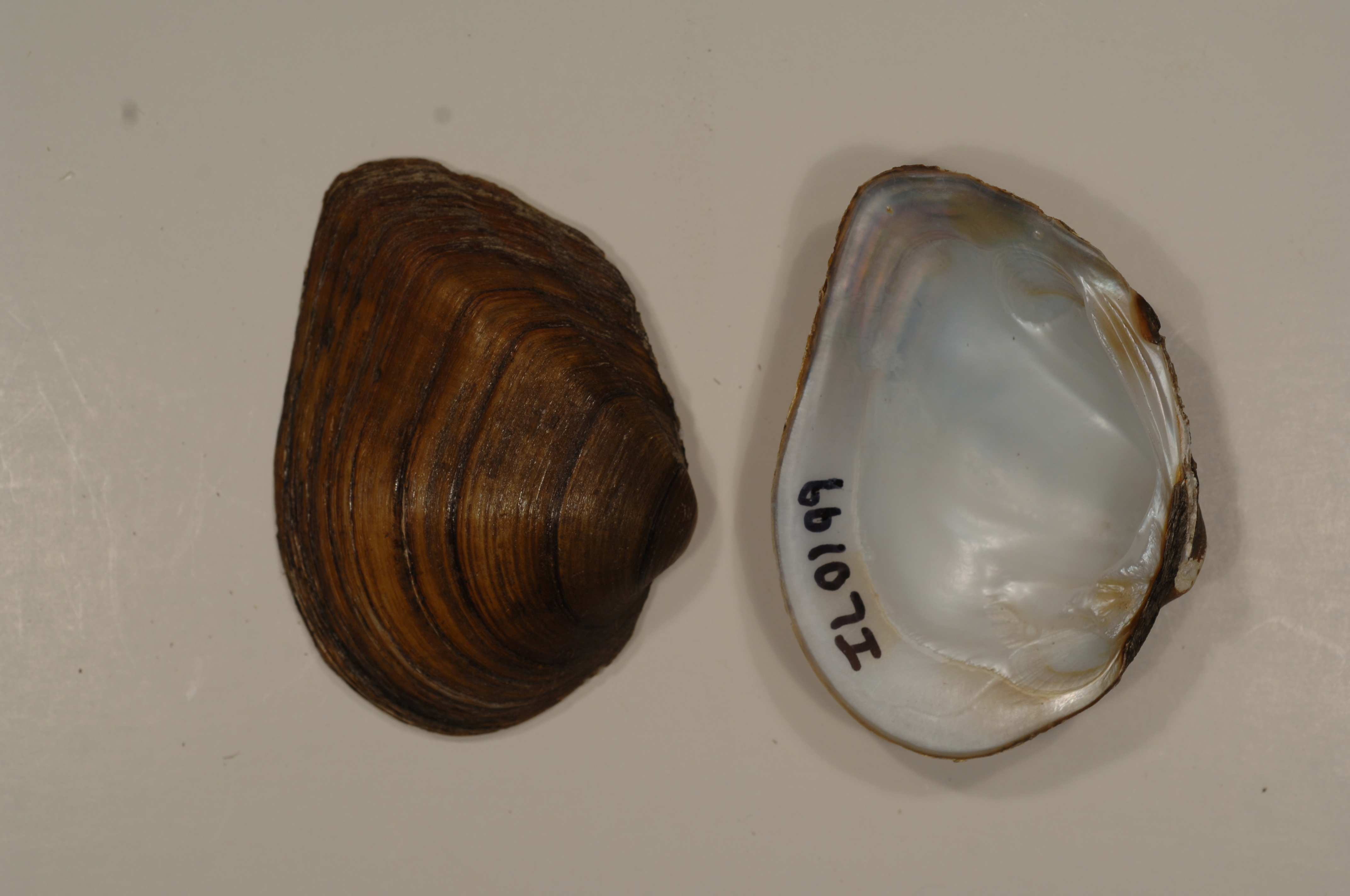 NCTC Freshwater Mussels Teaching Collection: Order: Unionoida Family: Unionidae Genus (ITIS): Fusconaia Species: flava Williams et al.: Use to be: Location Name: S. Fork Vermilion River, S. side Forest, E. of Rt.47 Livingston Co. Location State: IL