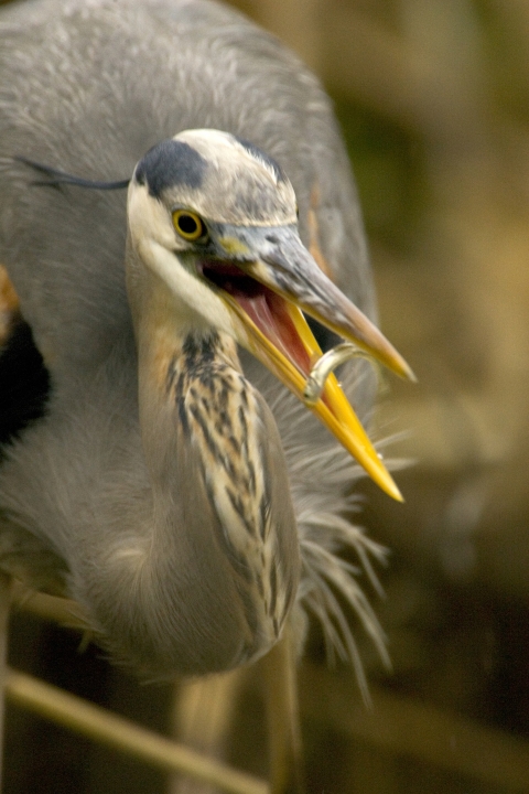 Large wading bird snacks on a fish