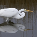 Large white wading bird pauses in refuge water.