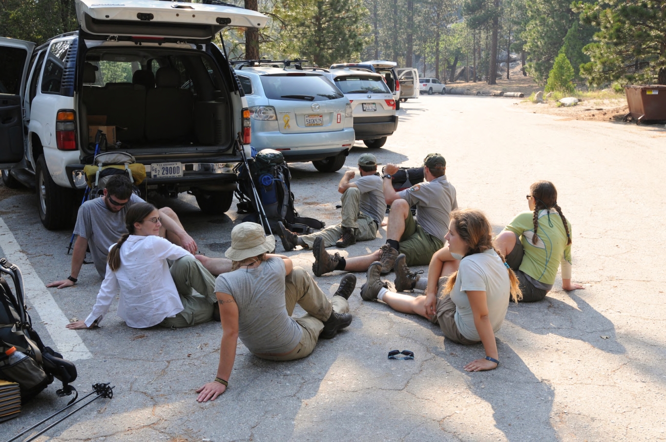 Waiting for remainder of crew. Hiking to Center Basin through Sequoia and Kings Canyon National Parks. National Park Service frog survey crew along on hike.