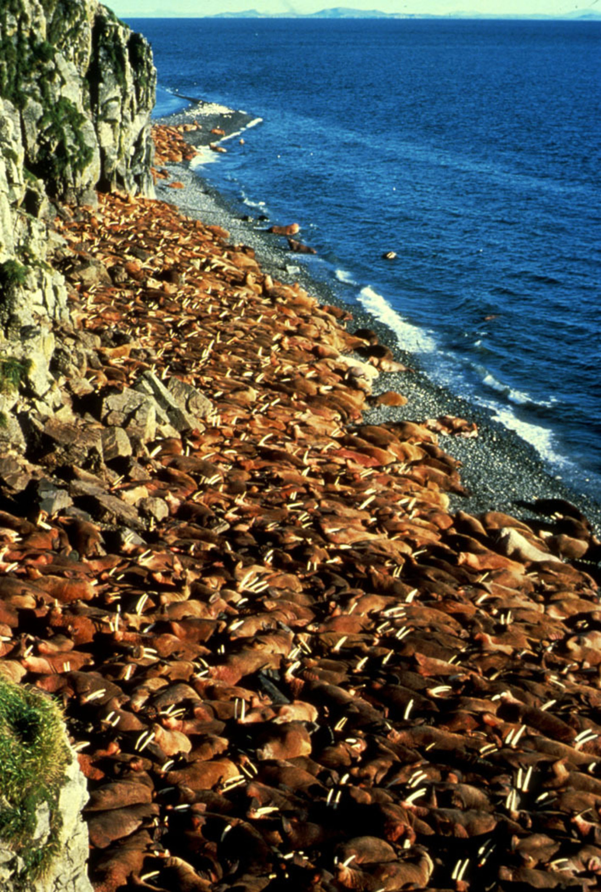 Herd of Walrus on the shoreline.